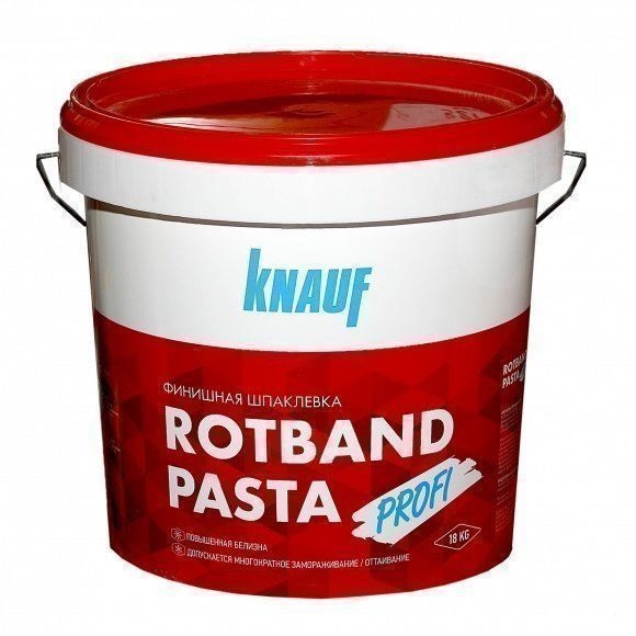 Кнауф Ротбанд Паста Профи - готовая пастообразная финишная шпатлёвка на виниловой основе. Обладает повышенной белизной, адгезией и трещиностойкостью. Идеально подходит для тонкослойного (на сдир) шпаклевания поверхности.
